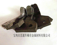 鉬重錘在拉升過程中起穩(wěn)定垂直的作用,連接鉬籽晶夾頭和鉬聯(lián)結(jié)鎢絲繩,自身重量4-7公斤。 產(chǎn)品指標(biāo):產(chǎn)品鉬含量不低于99.95%,物理密度9.8g/cm3以上。同心度與鉬籽晶夾頭一樣的要求,公差0.02mm以內(nèi),絲口要求光滑,無爛牙,產(chǎn)品光潔度高。 *鉬吊環(huán)(鉬抓扣) 鉬吊環(huán)是提拉系統(tǒng)的組件,三件為一套。